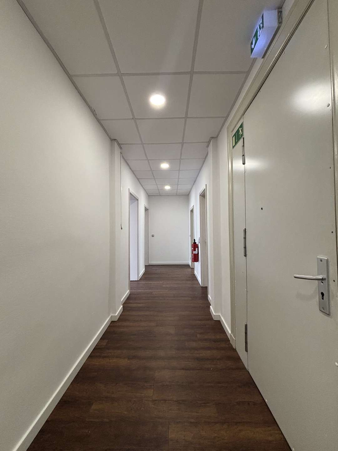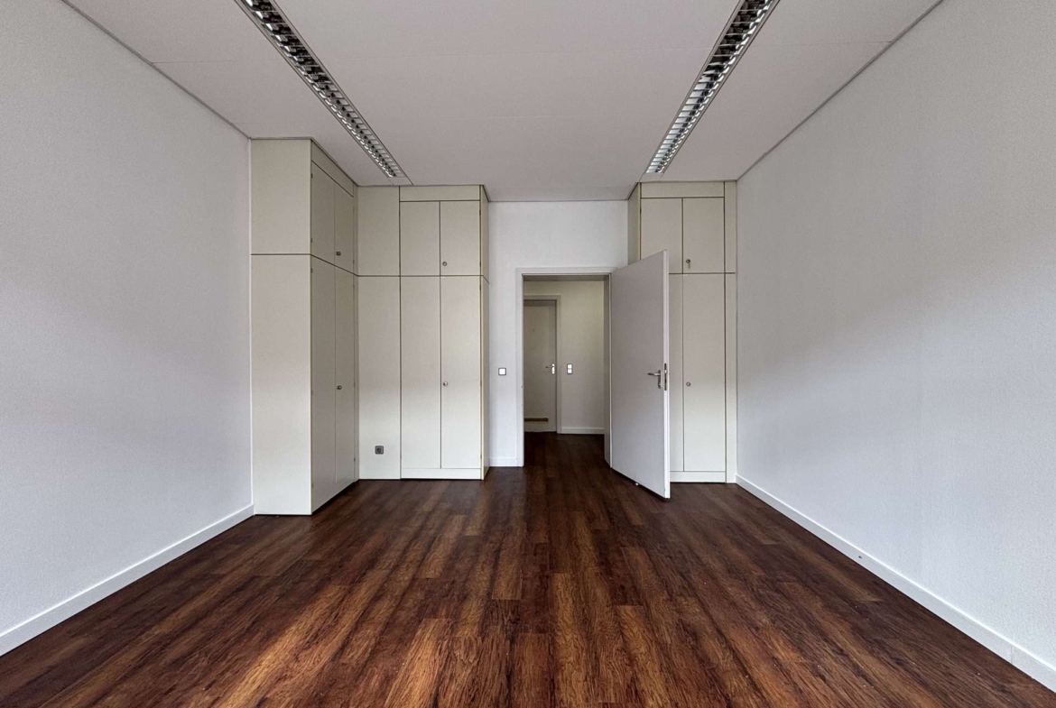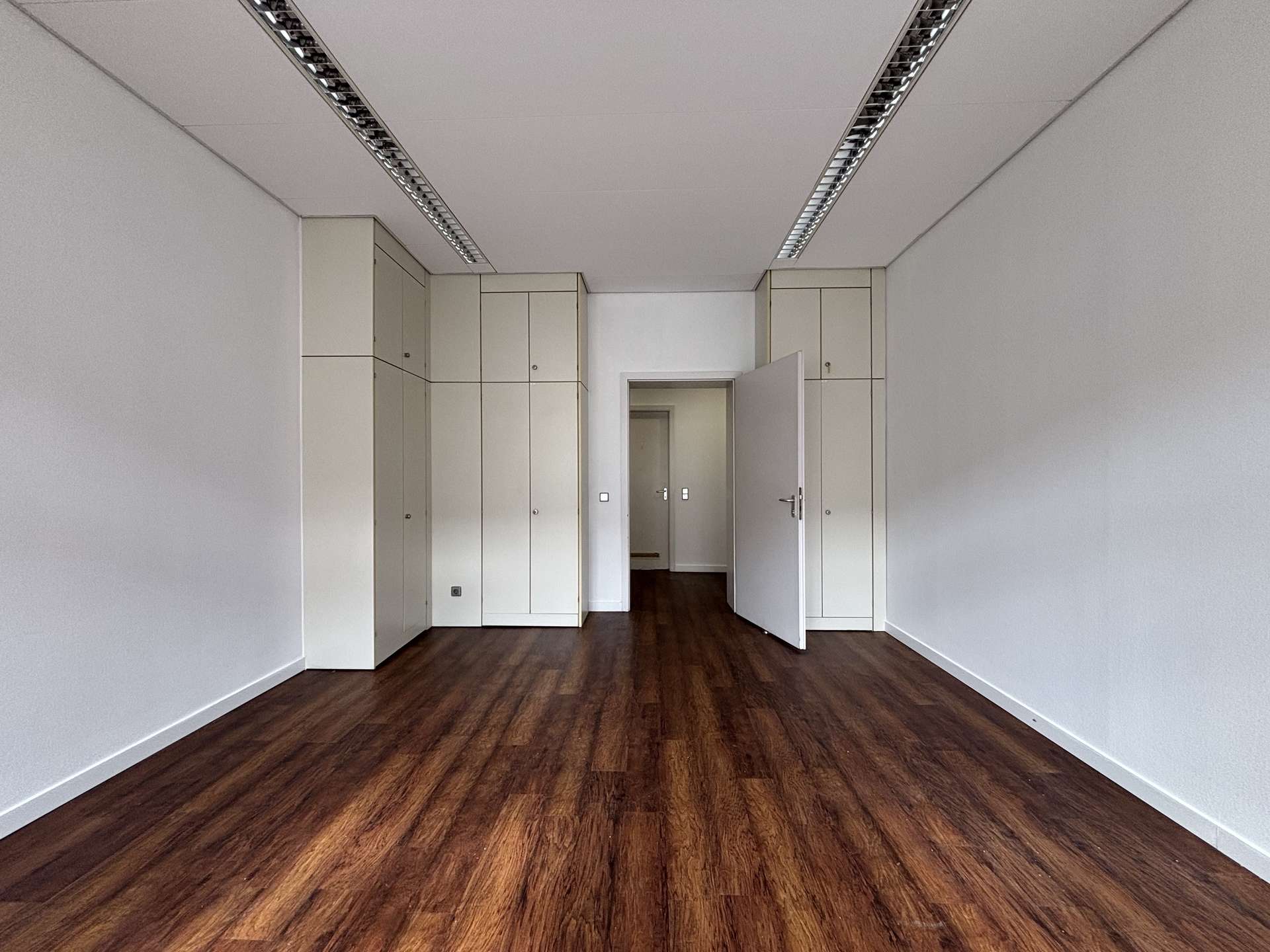 Die großzügig geschnittenen, lichtdurchfluteten Büroräume bieten eine angenehme Arbeitsatmosphäre und lassen sich flexibel nach den individuellen Bedürfnissen Ihrer Organisation gestalten. Der hochwertige Laminatboden sorgt für ein gepflegtes Erscheinungsbild und trägt zum modernen Gesamteindruck der Fläche bei. Integrierte Einbauschränke bieten nicht nur praktischen Stauraum, sondern unterstützen auch eine strukturierte Raumnutzung, ohne zusätzliche Möblierung notwendig zu machen.