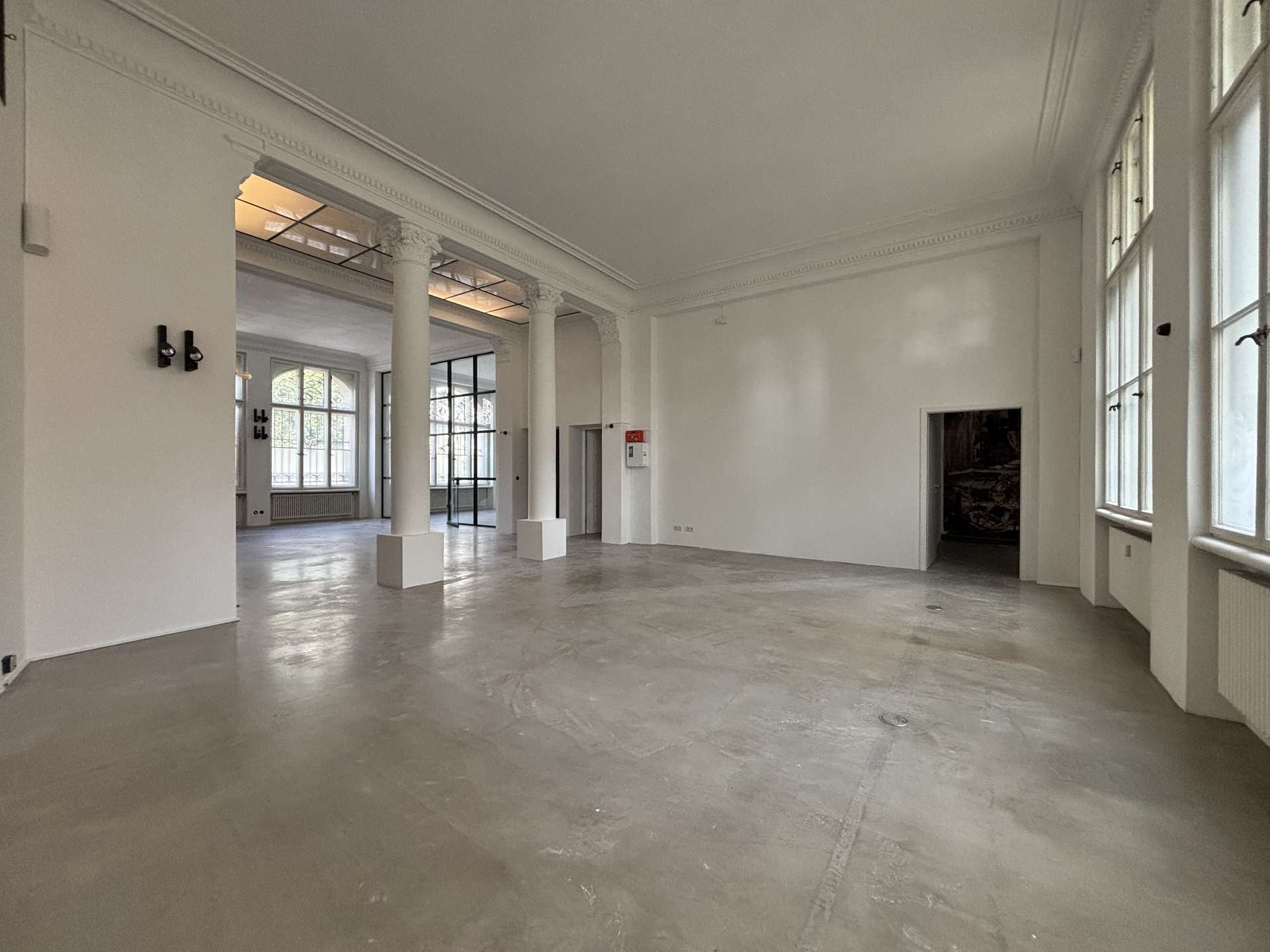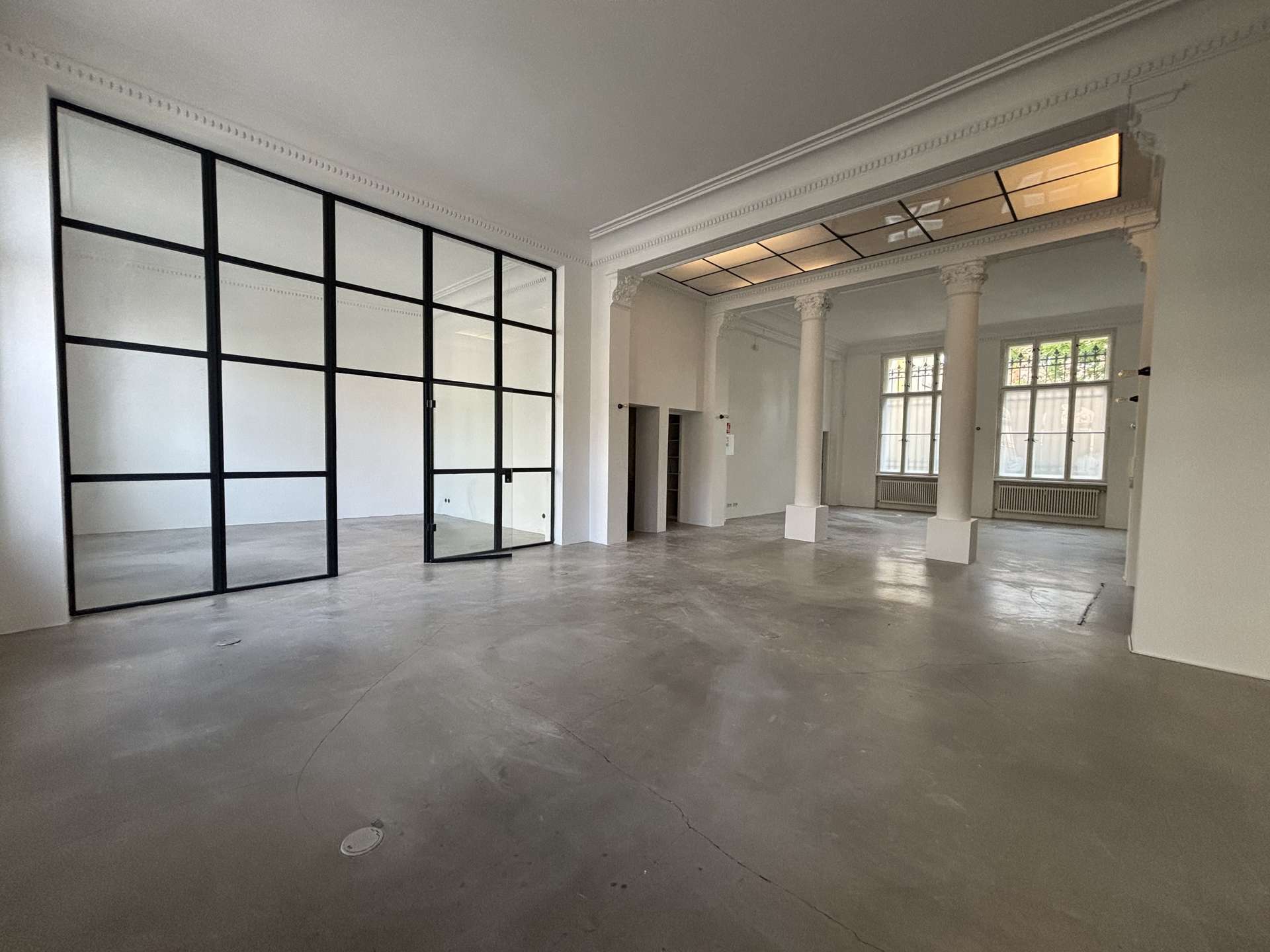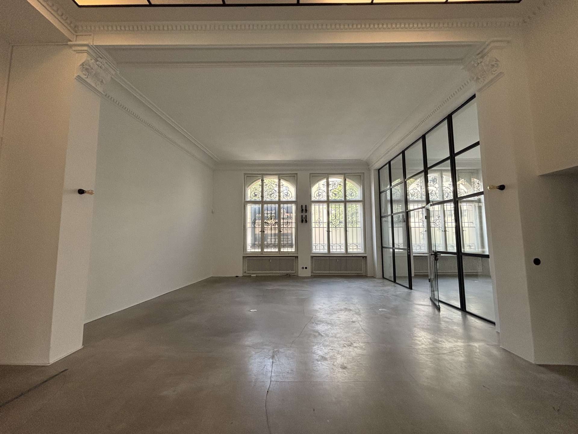 – Denkmalgeschütztes Flair: Großflächige Fenster mit aufwendigen Vergitterungen, hohe Decken (über 4 Meter) und historische Raumdetails schaffen eine inspirierende Atmosphäre, die Ihre Kunden begeistern wird.