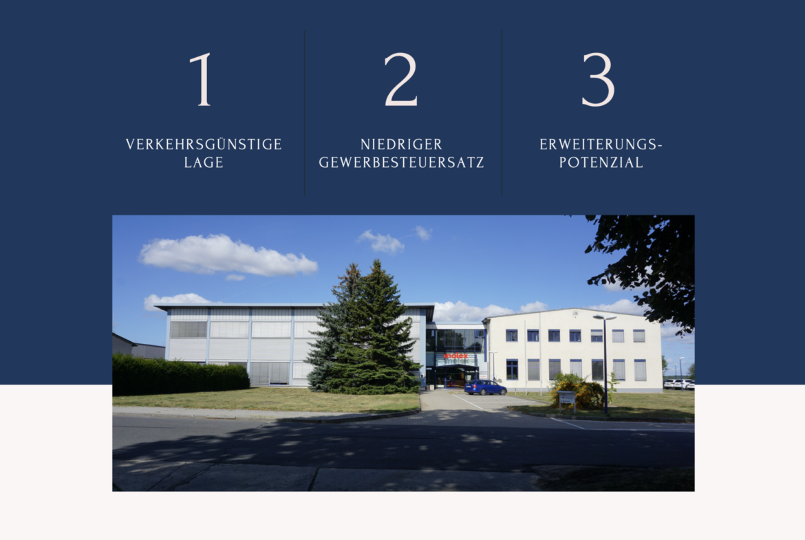 Profitieren Sie von einem der niedrigsten Gewerbesteuersätze Deutschlands, der bei lediglich c.a 270% liegt und siedeln Sie Ihr Unternehmen in unserer Liegenschaft im verkehrsgünstig gelegenen Gewerbegebiet in Zossen-Dabendorf unweit vom Berliner Flughafen BER an – einem Standort mit vielfaltigem Potenzial für künftige Flächenerweiterungen. Zur Vermietung stehen Logistik, Produktions-und Lagerflächen nebst den dazugehörigen Büroflächen und Stellplätzen.