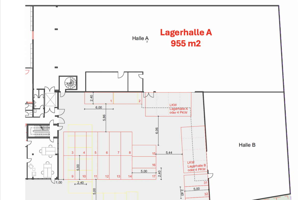 Gute Anfahrbarkeit für LKW, kurze Wege zur Autobahn, funktionaler Grundriss – ein praktischer Standort für wachsende Betriebe.