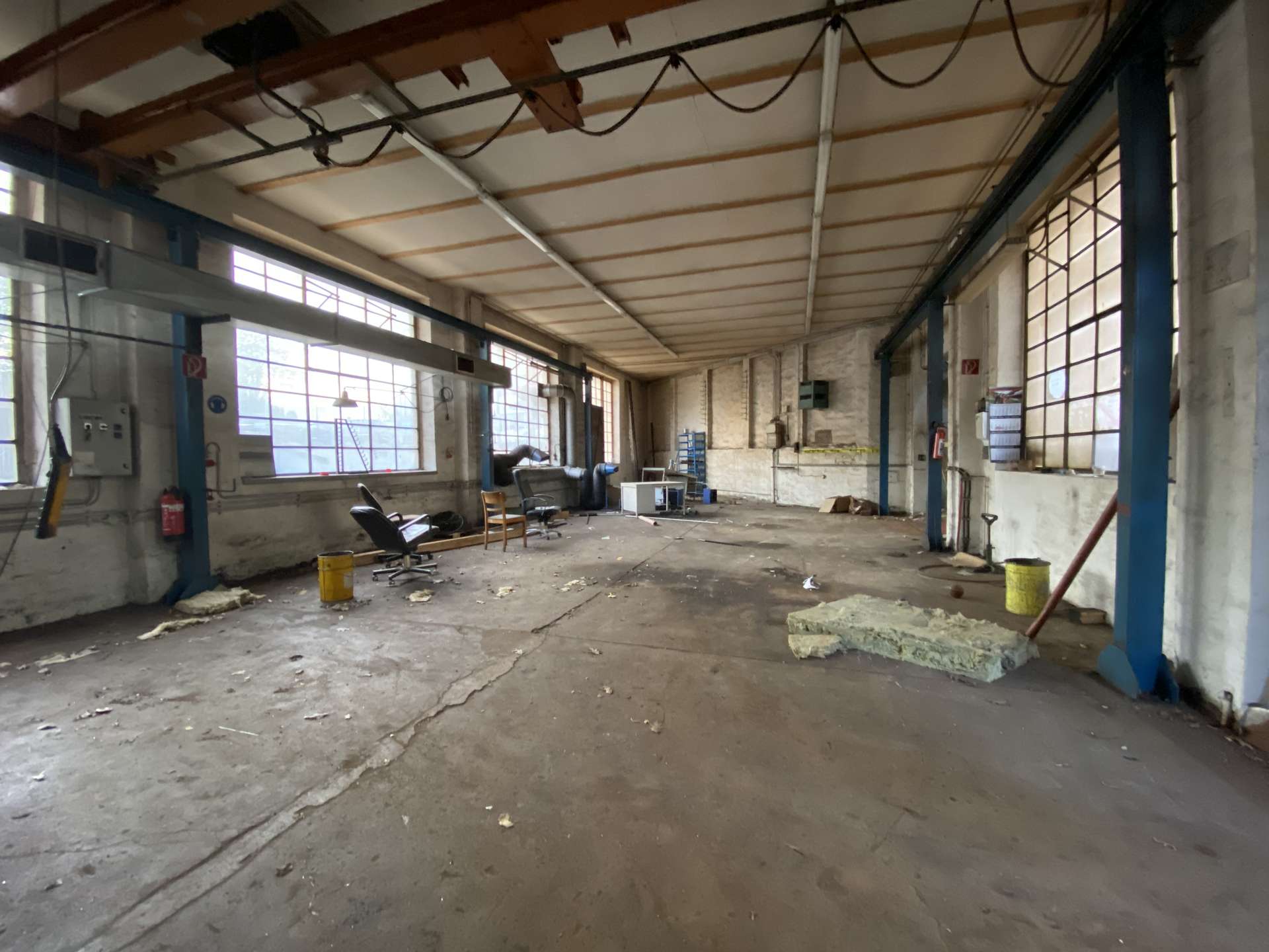 Die Werkstatt hat eine Deckenhöhe von c.a 3-4m und eine hohe Bodenbelastung.