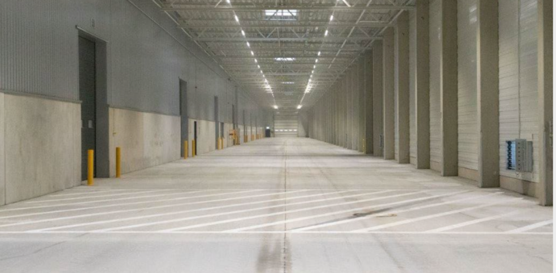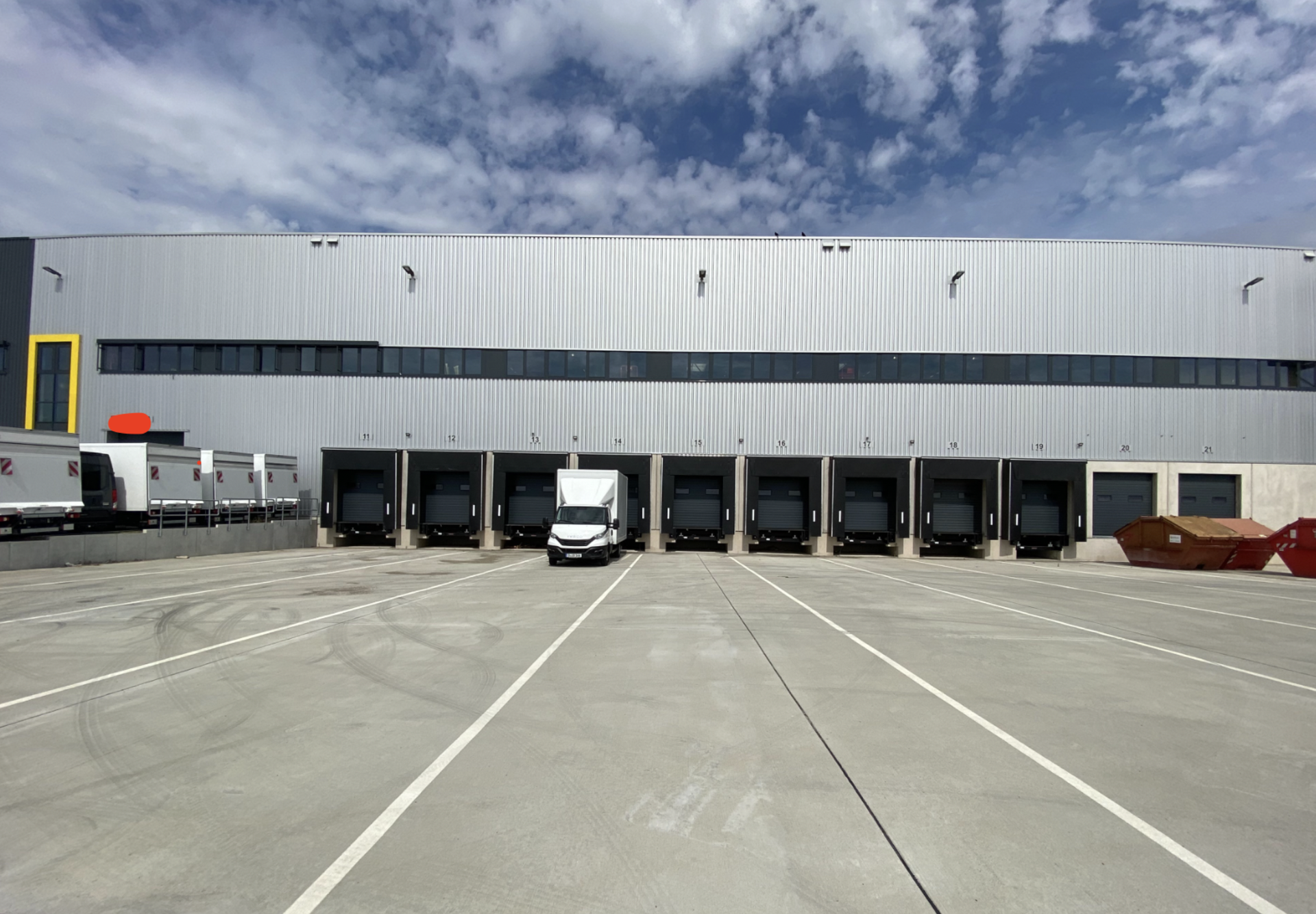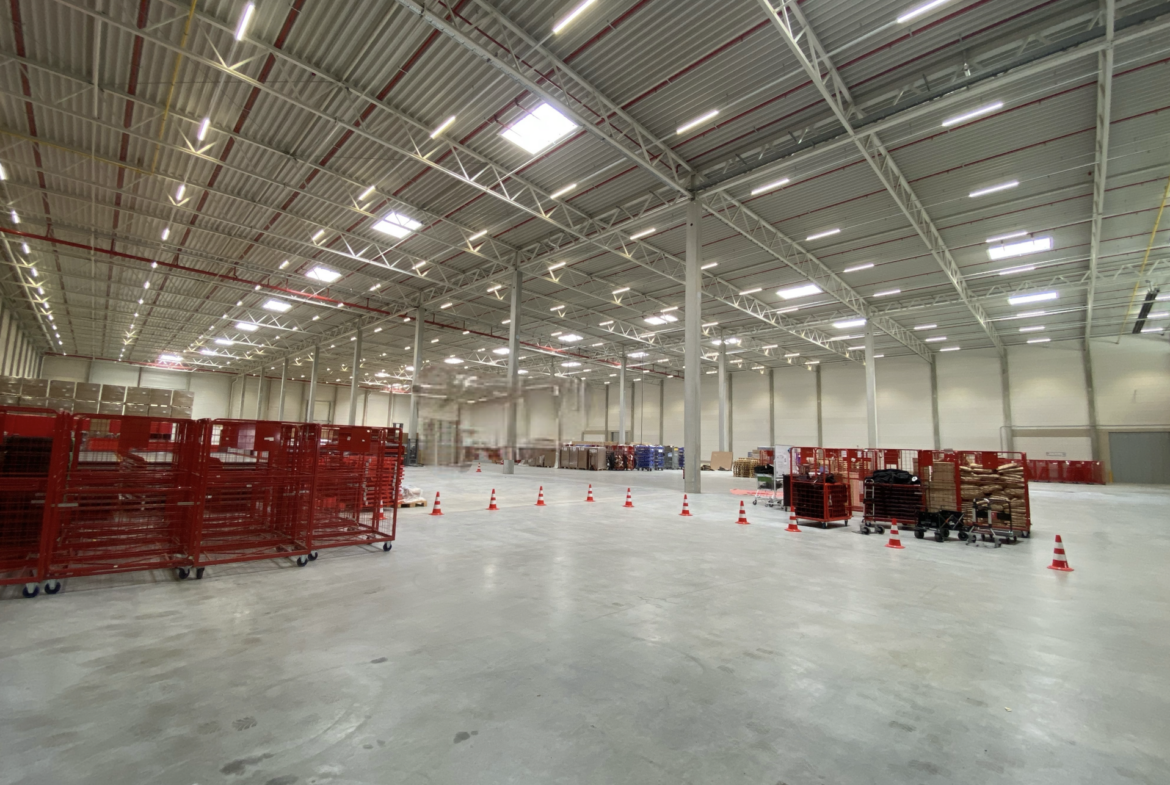 Mit einer Deckenhöhe von ca. 12 Metern, mit mehr als 11 LKW-Rampenstationen und mehrere ebenerdige Anlieferbereichen erfüllt die Halle sämtliche Anforderungen an eine reibungslose Logistik und optimierte Arbeitsabläufe.