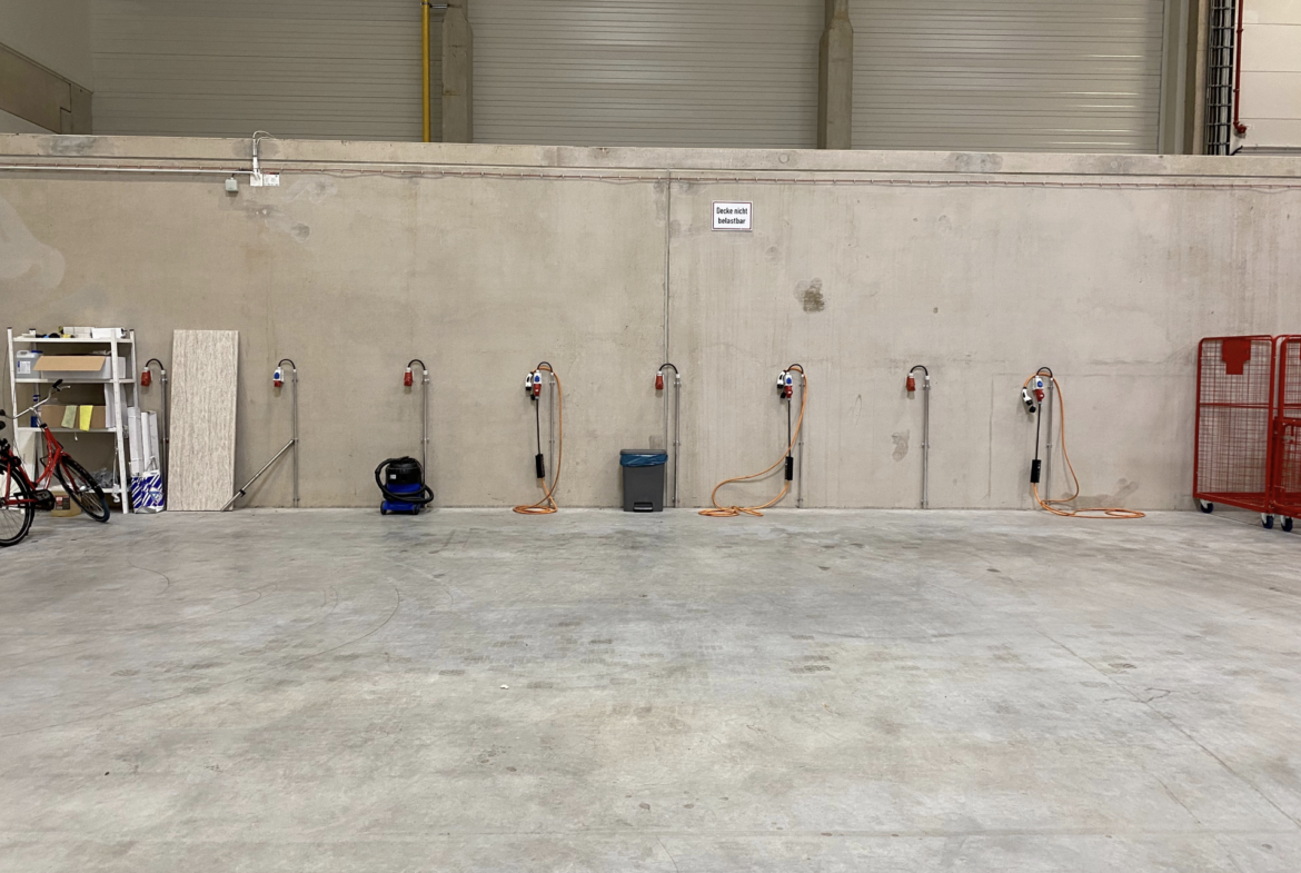 Die Hallen sind zudem hervorragend auf die Zukunft der Elektromobilität vorbereitet, da Starkstromanschlüsse für Elektrofahrzeuge zur Verfügung stehen.